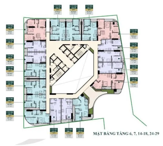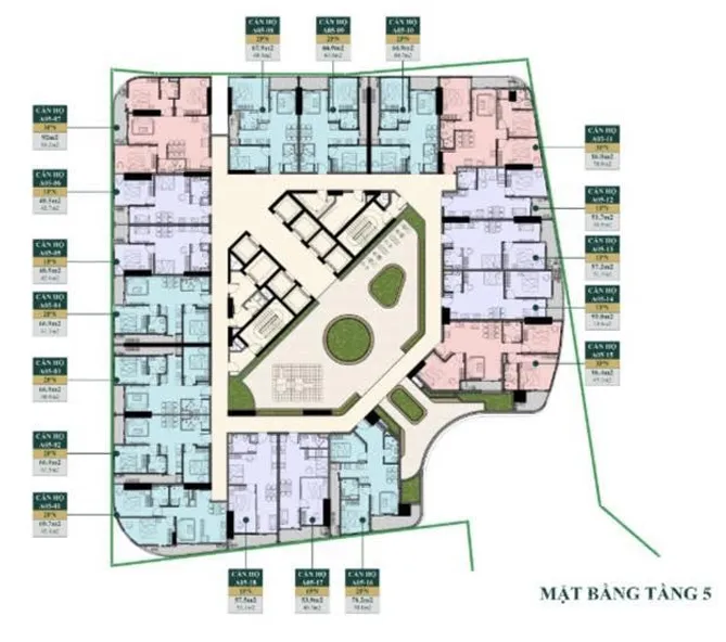 Diện tích sản phẩm: 42m2 đến 89m2.
